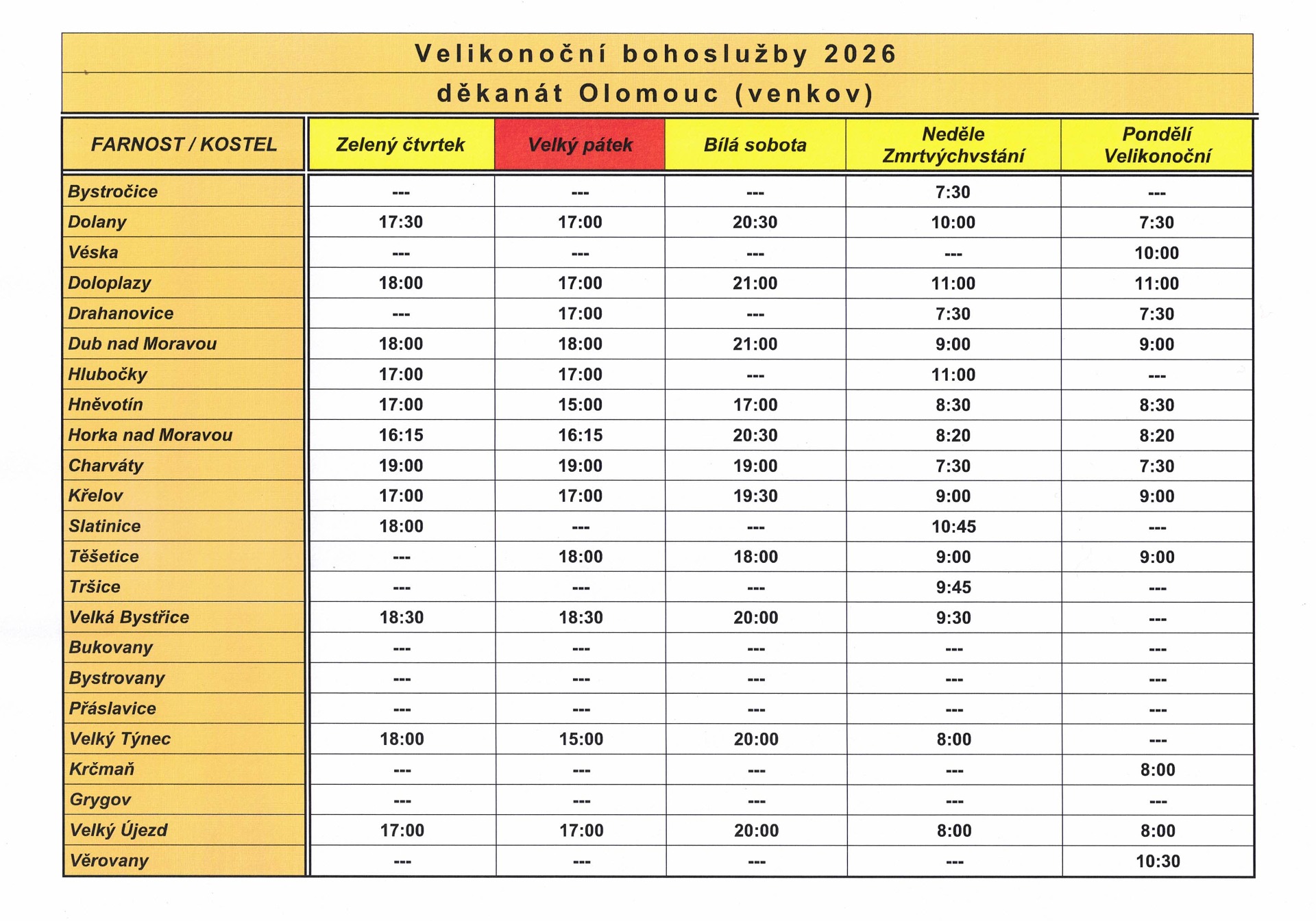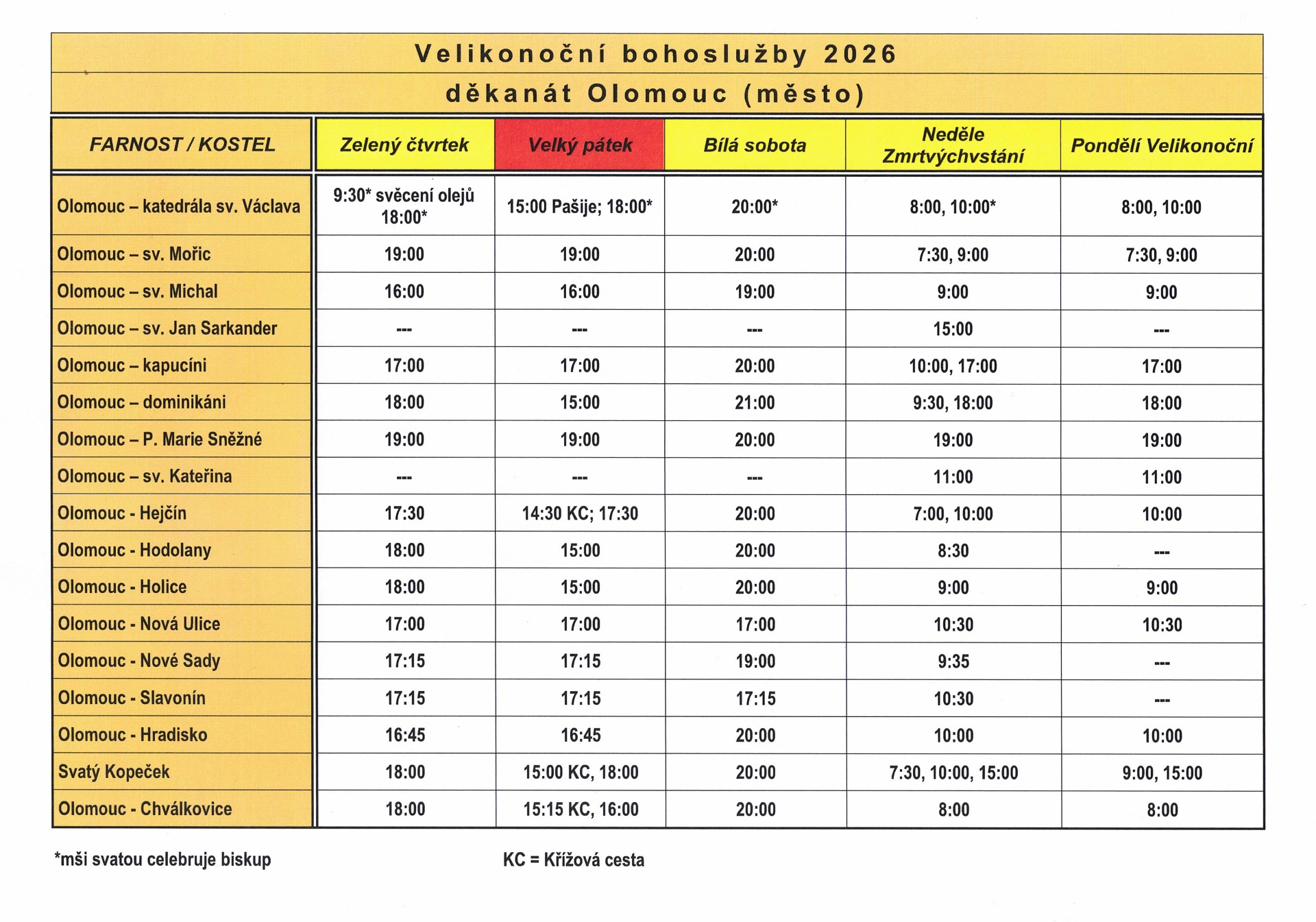 PROGRAM ve Svatém týdnu